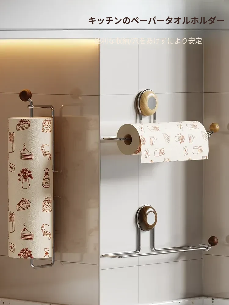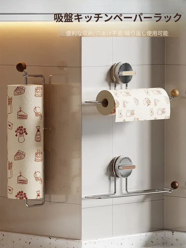 吸盤式キッチンペーパーラック - 穴あけ不要のキャビネット用、使い捨ての楽ちんクロスとラップも掛けられる便利アイテム!清潔でスマートなキッチンを実現。
