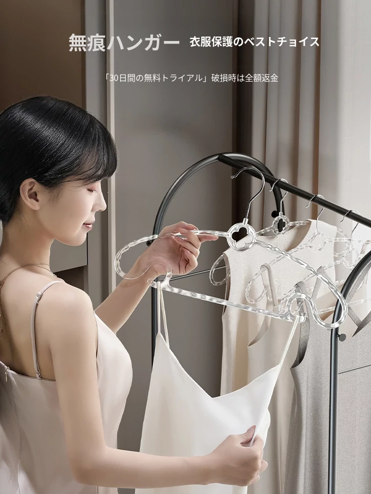 透明無痕ハンガー - 滑り止め・肩崩れ防止で衣類をしっかりサポート!おしゃれで機能的な家庭用ハンガー、ネットで話題の衣類乾燥アイテム。クローゼットをスッキリ整理!