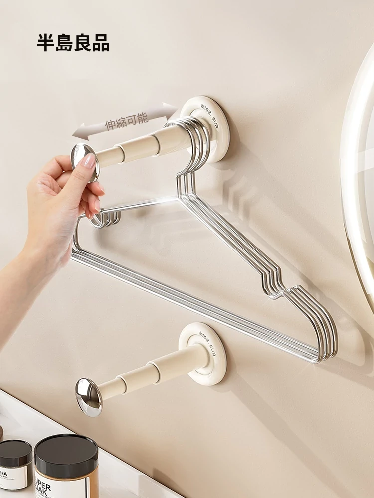 [半島良品] 壁掛けハンガー収納ラック - 穴を開けずに簡単取り付け!バルコニーや家の壁にぴったり。伸縮可能で洗濯物もスッキリ整理できる便利なアイテム!