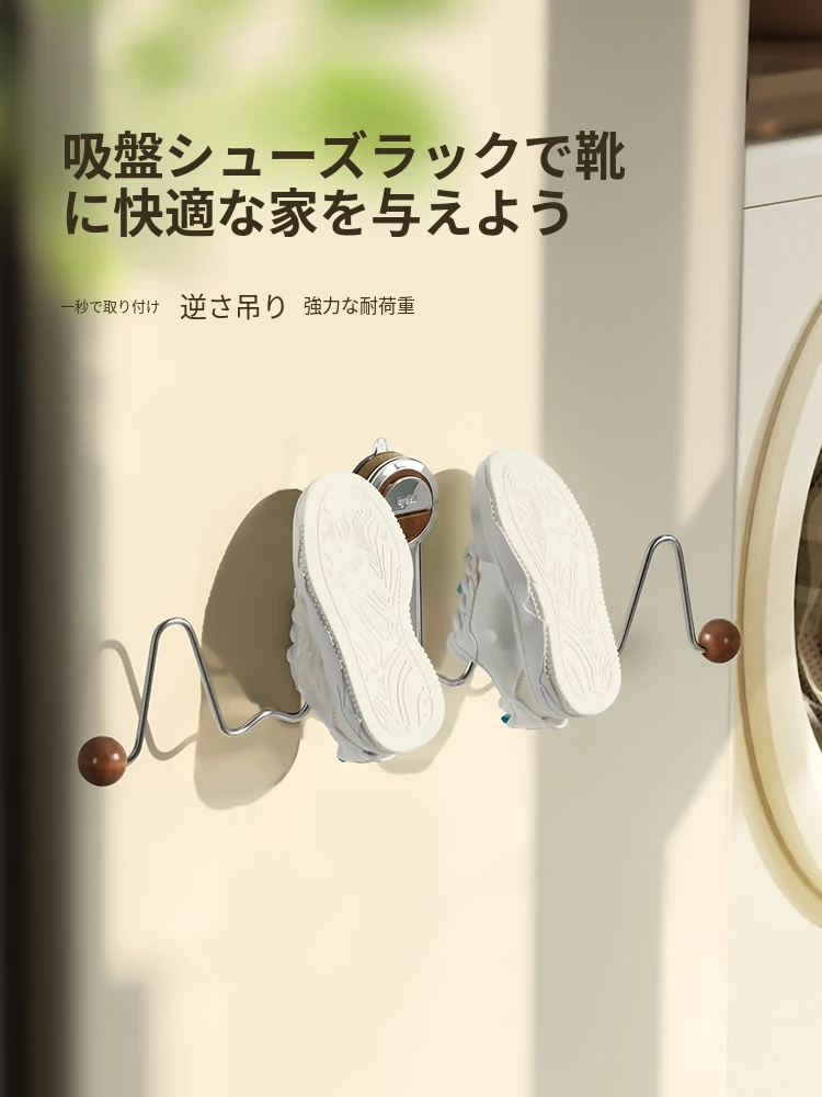 吸盤式靴き干しラック 家庭用バルコニー・タイル窓に最適!壁掛け式で穴あけ不要の多機能デザイン。靴を簡単に乾かせる必需品!