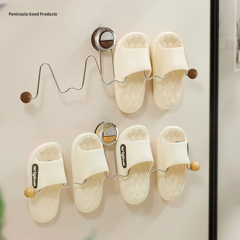 Suction Cup Bathroom Slippers Rack - No Drilling Wall-Mounted Shoe Storage Organizer for Toilet and Bathroom, Water-Draining Shelf for Ultimate Space-Saving Solution!