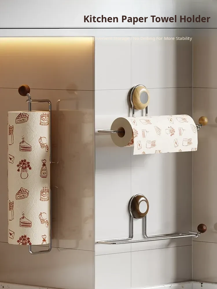 Walnut Wood Kitchen Paper Towel Holder - No Drilling Required, Cabinet Paper Roll Rack, Lazy Cloth & Plastic Wrap Organizer, Stylish and Functional Kitchen Accessory!