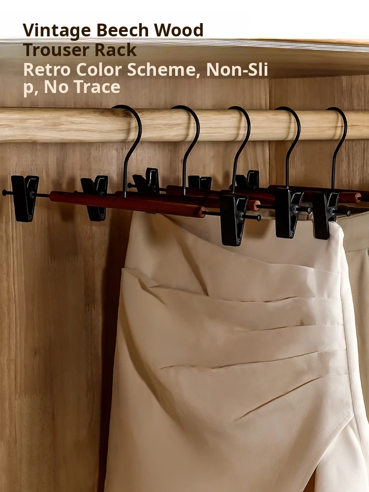 Premium Wooden Pants Hanger with Clips - Non-Slip, No Trace Design for Hanging Pants, Skirts, and Socks - Ideal for Home Storage and Organization