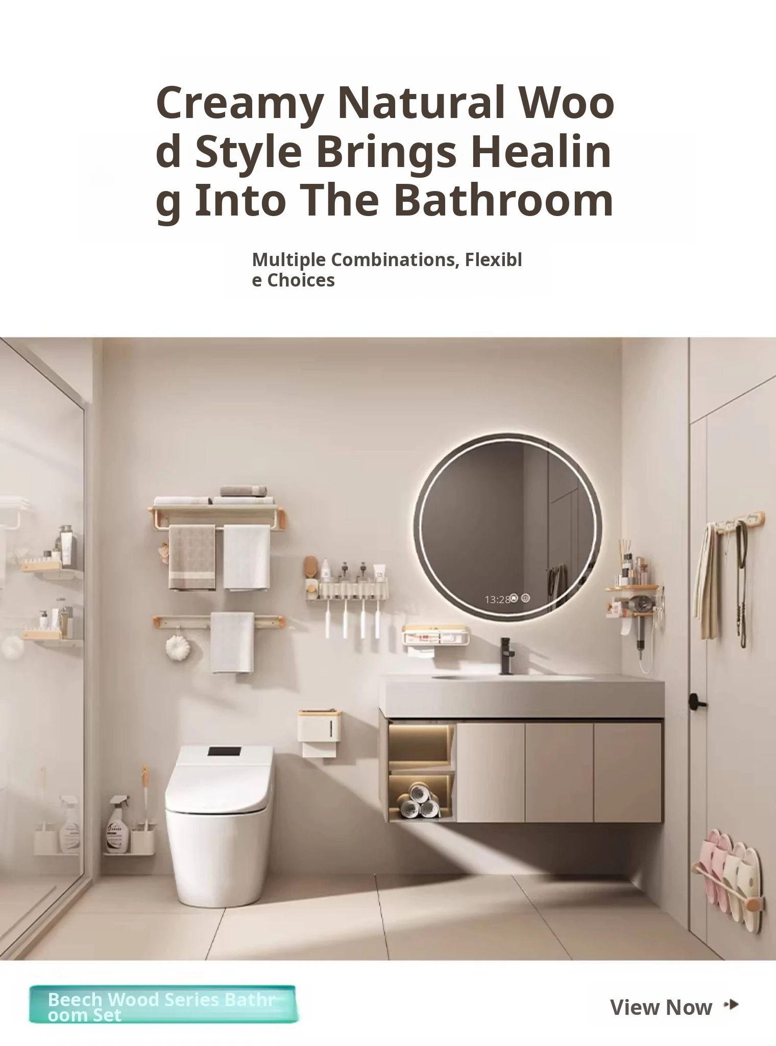 ❤️Cream Beechwood Toilet Brush Holder with Storage