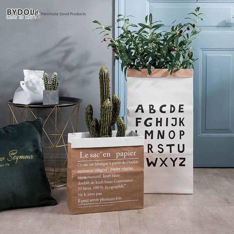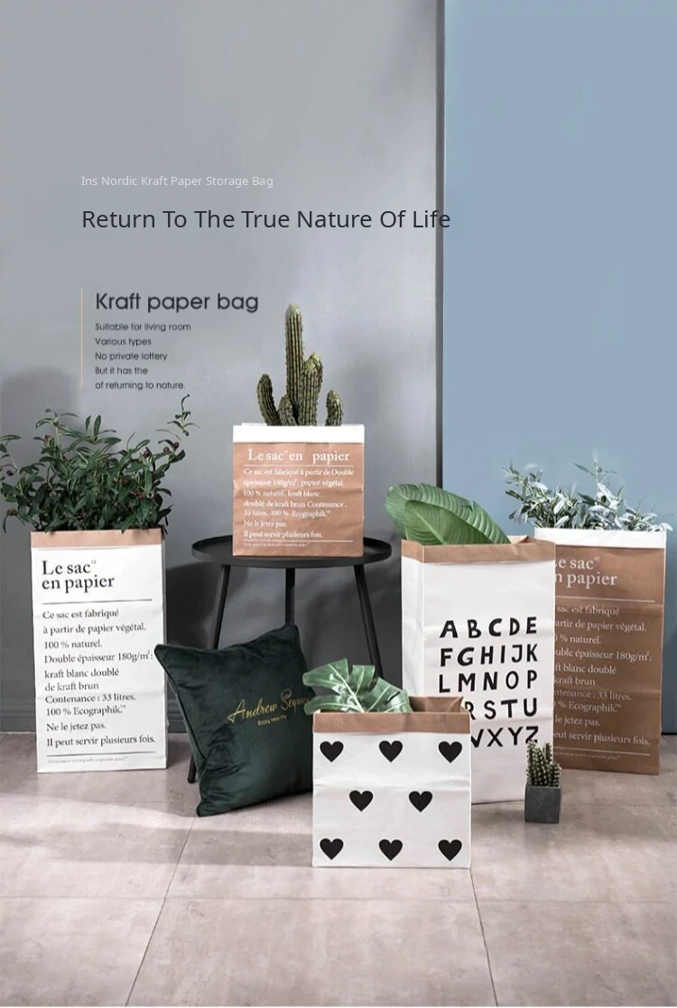 Creative Nordic Style Kraft Paper Storage Bag - Chic Home Decor for Living Room Display and Decorative Accents