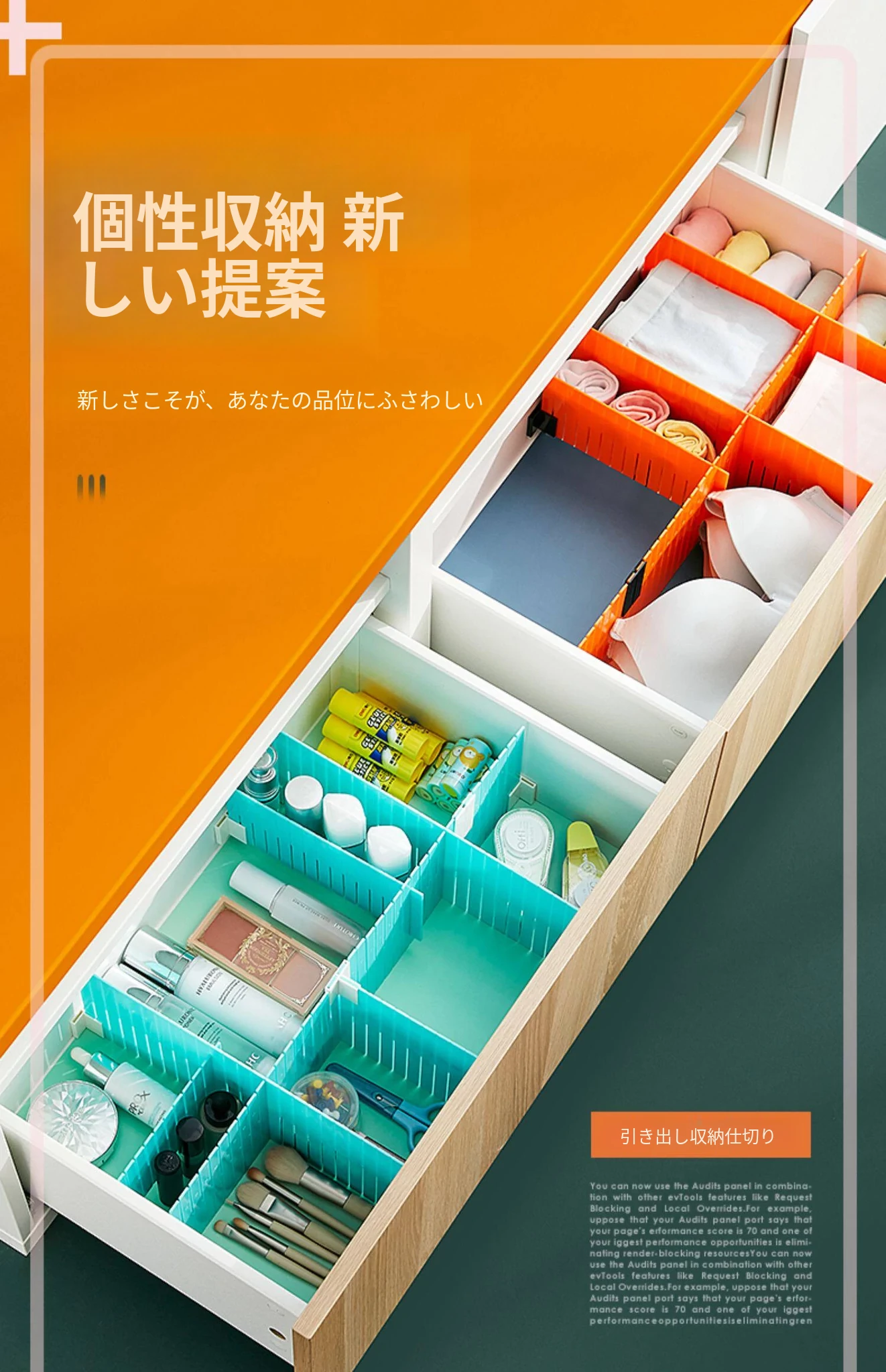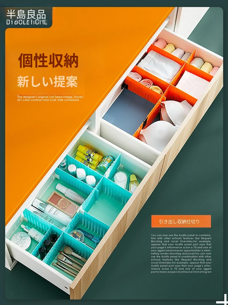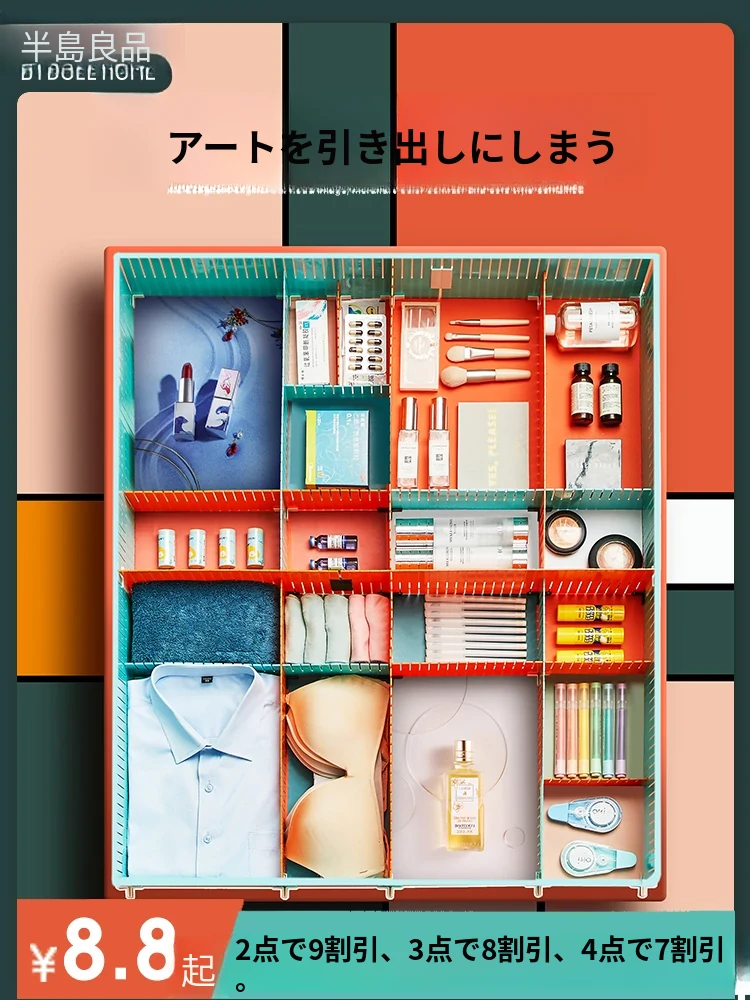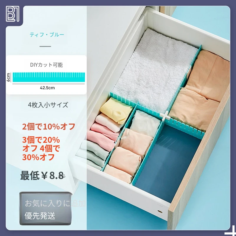 靴下や下着をスッキリ整理!プラスチック製の自由に組み合わせ可能な引き出し収納仕切り板。お部屋を美しく保つための便利アイテム、格子状の分割ボックスで使いやすさ抜群!