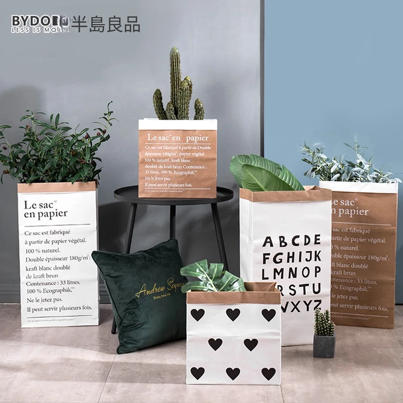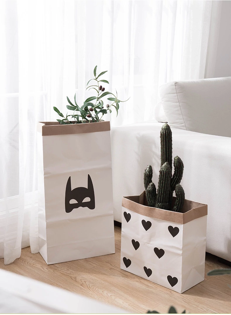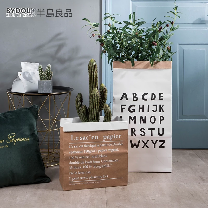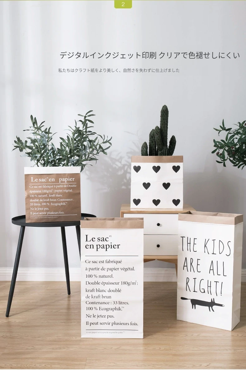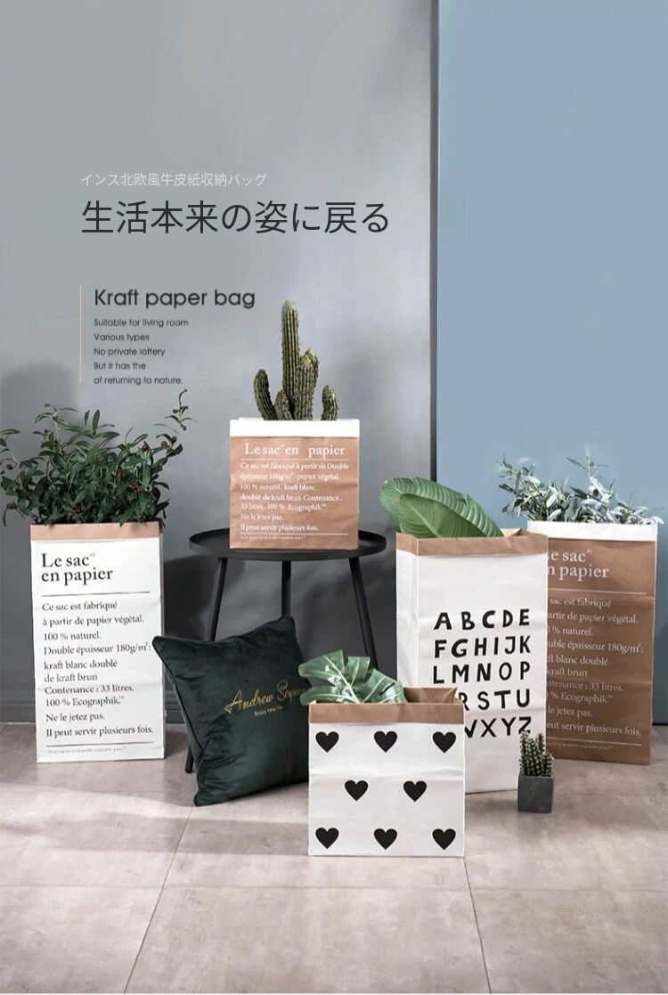 北欧風のおしゃれなインスピレーション!クリエイティブな牛皮紙収納バッグ - リビングやディスプレイにぴったりなアートなインテリア小物。あなたの家を魅力的に彩るデコレーションアイテム!