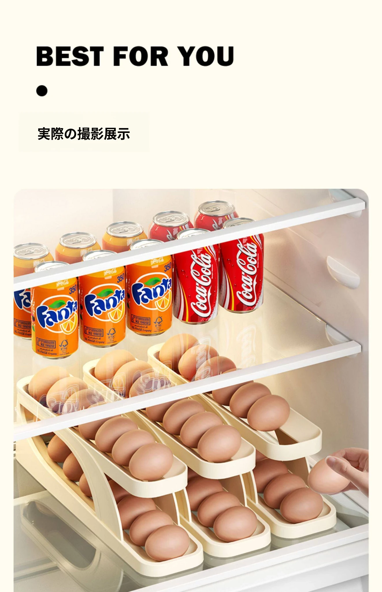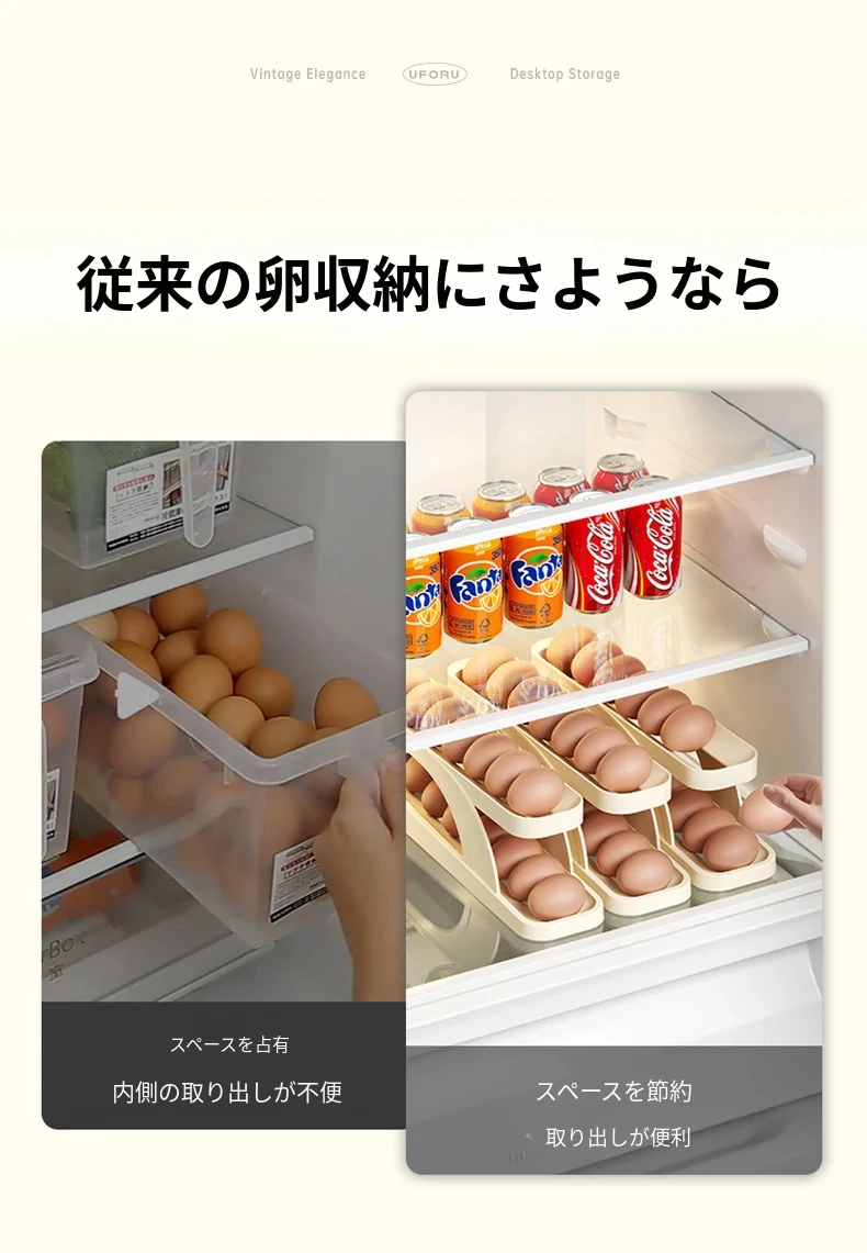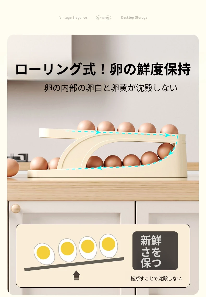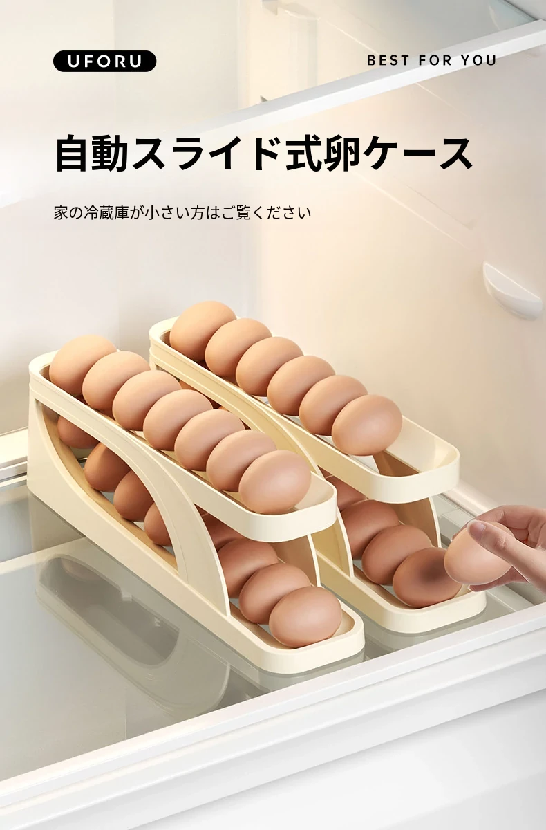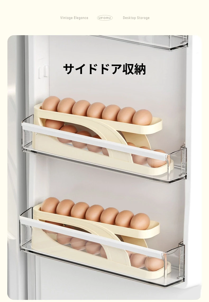 食品グレードの卵収納ボックス - 冷蔵庫の側面にぴったり!キッチン専用の卵ラックで、新鮮さをキープ!整理整頓も簡単な卵保鮮ケース。