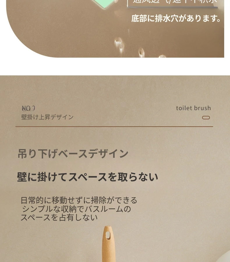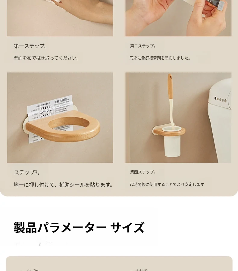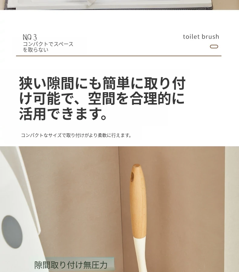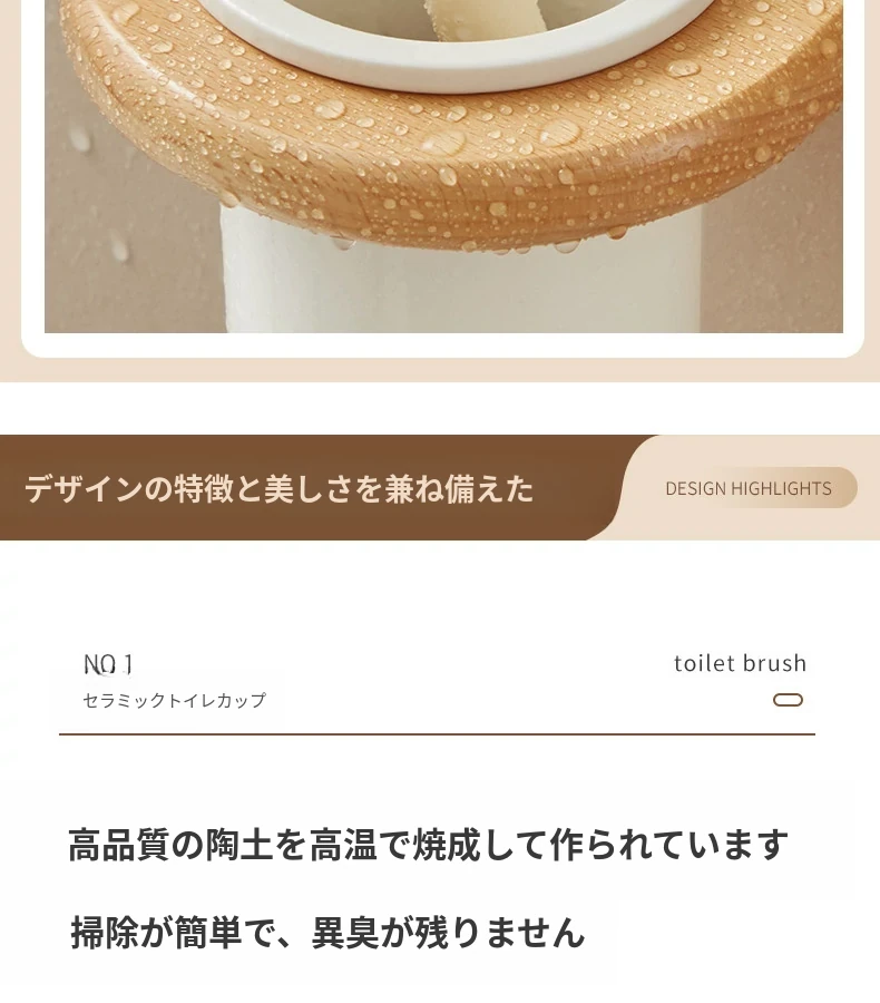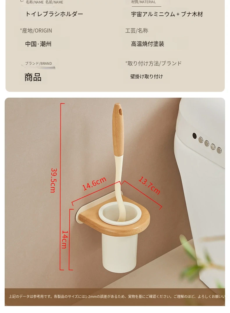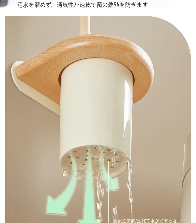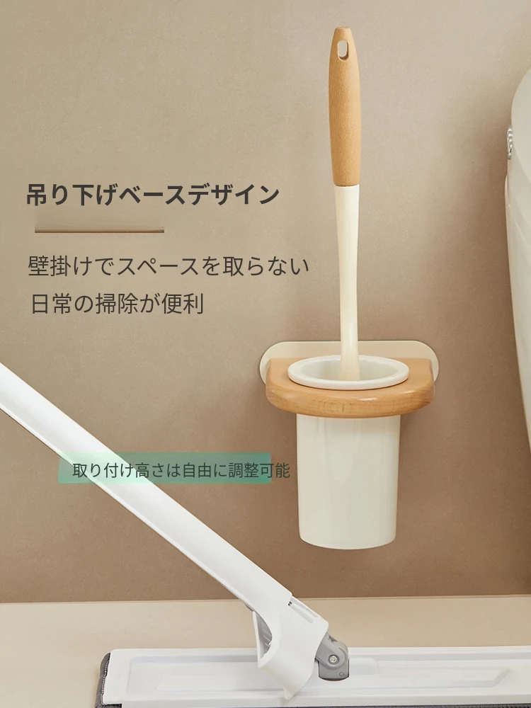 無孔取り付け可能!天然木製のトイレブラシスタンドセット - 壁掛け式の本格的な陶器カップとクリーニングブラシのコンビネーションで、清潔感あふれるバスルームを演出!