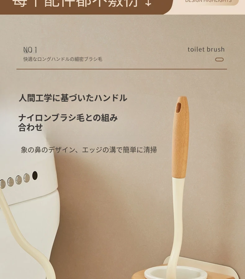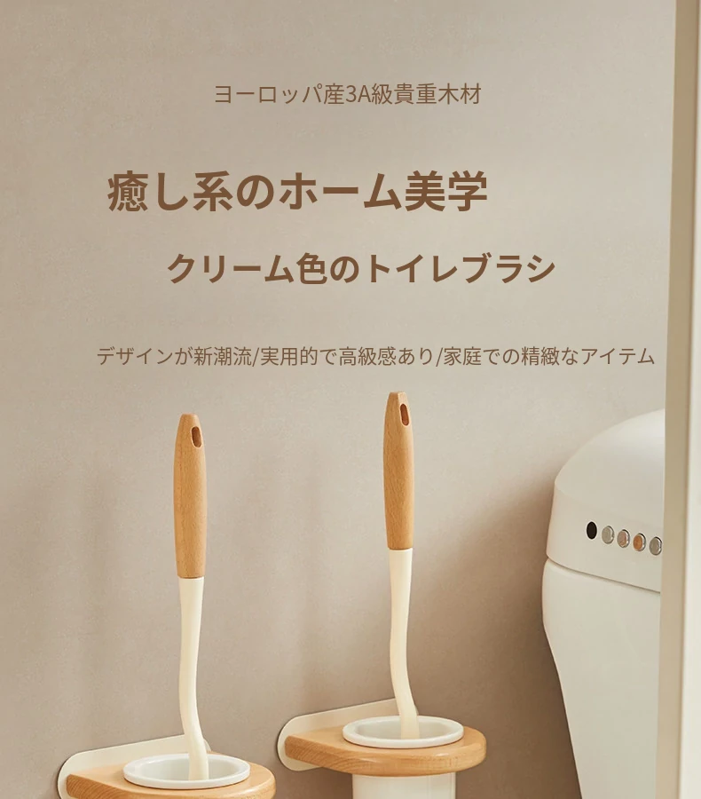 クリームホワイトウッド丨トイレブラシセット