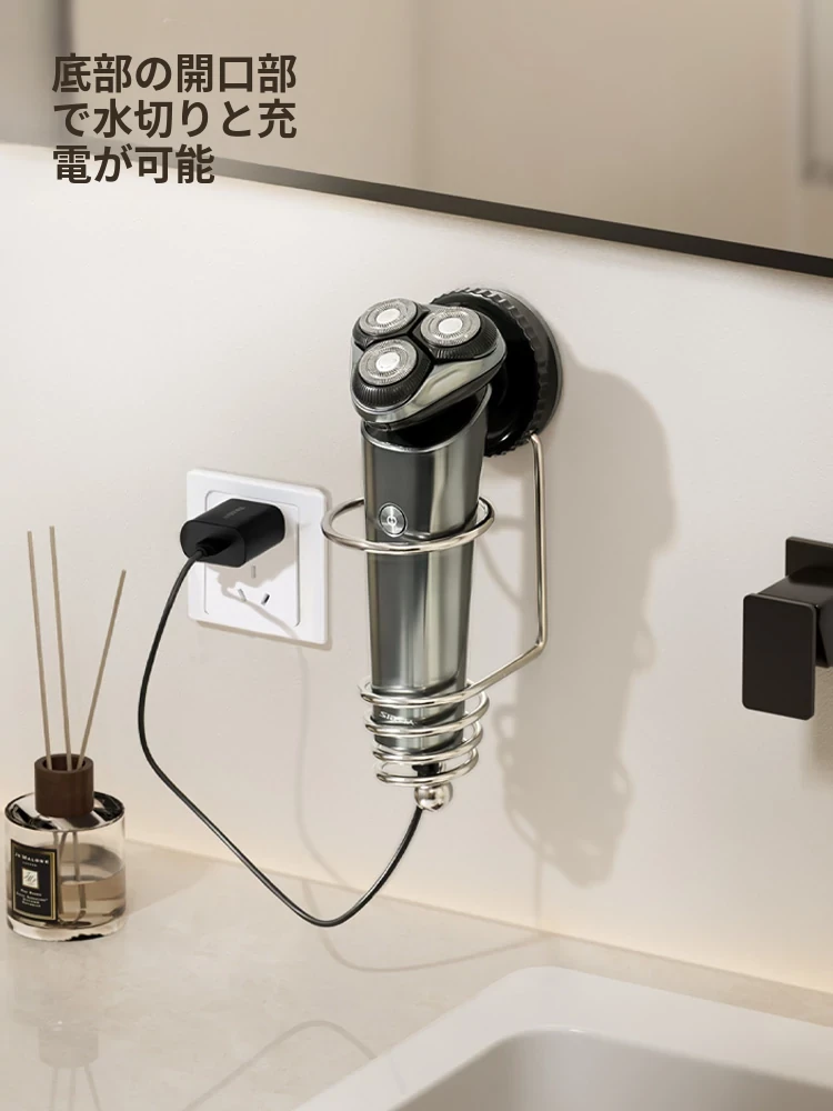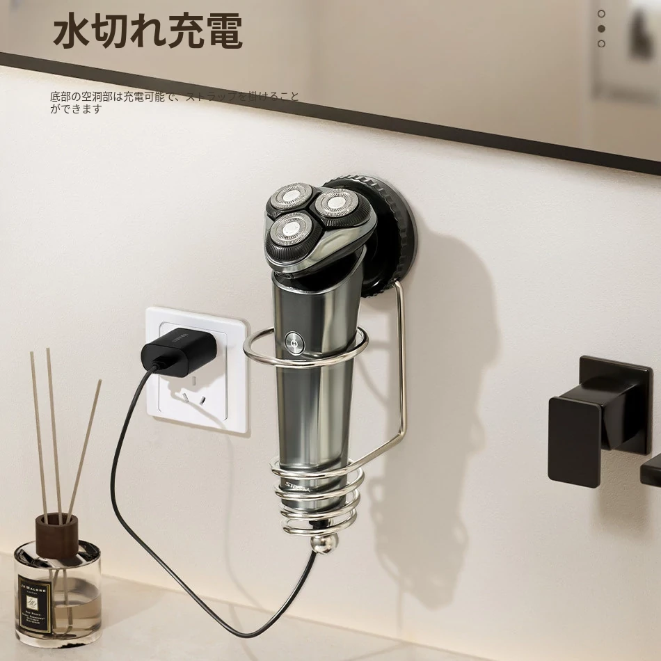 トイレ用電動シェーバー収納ラック 壁掛けタイプで穴あけ不要!手動カミソリも収納可能な便利なシェーバーホルダー!清潔感あふれる空間を実現!
