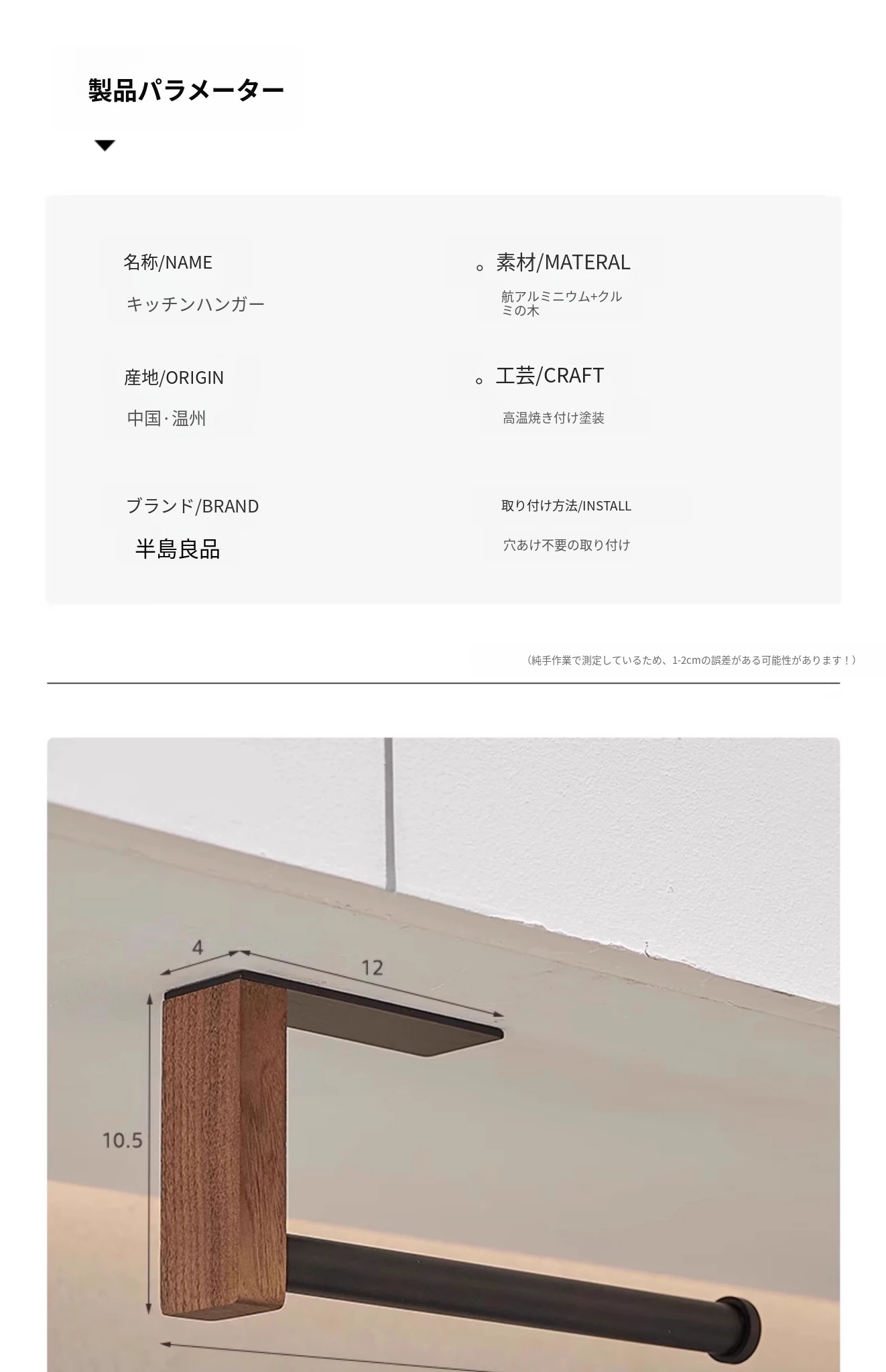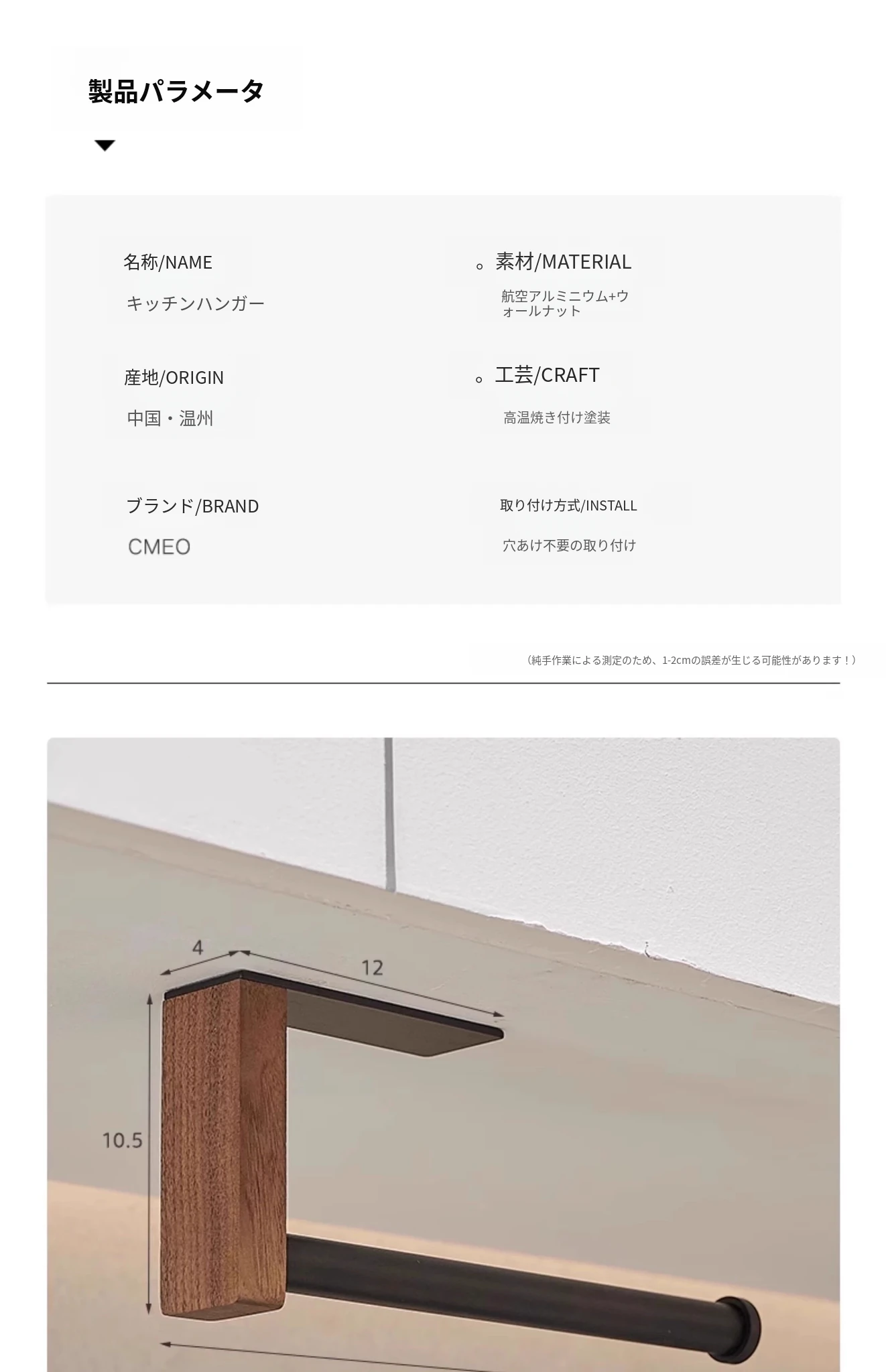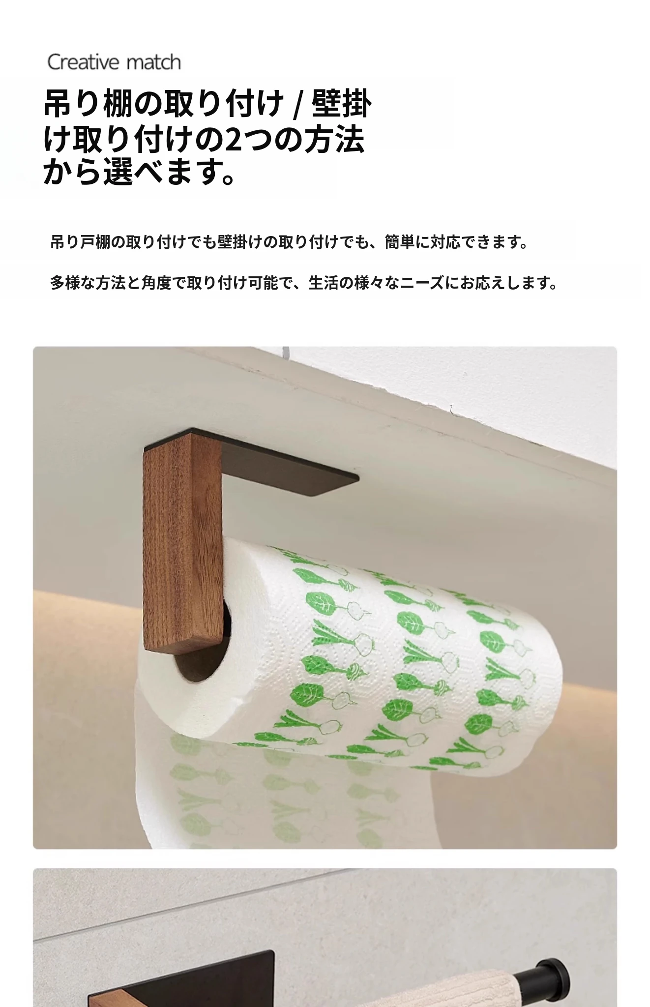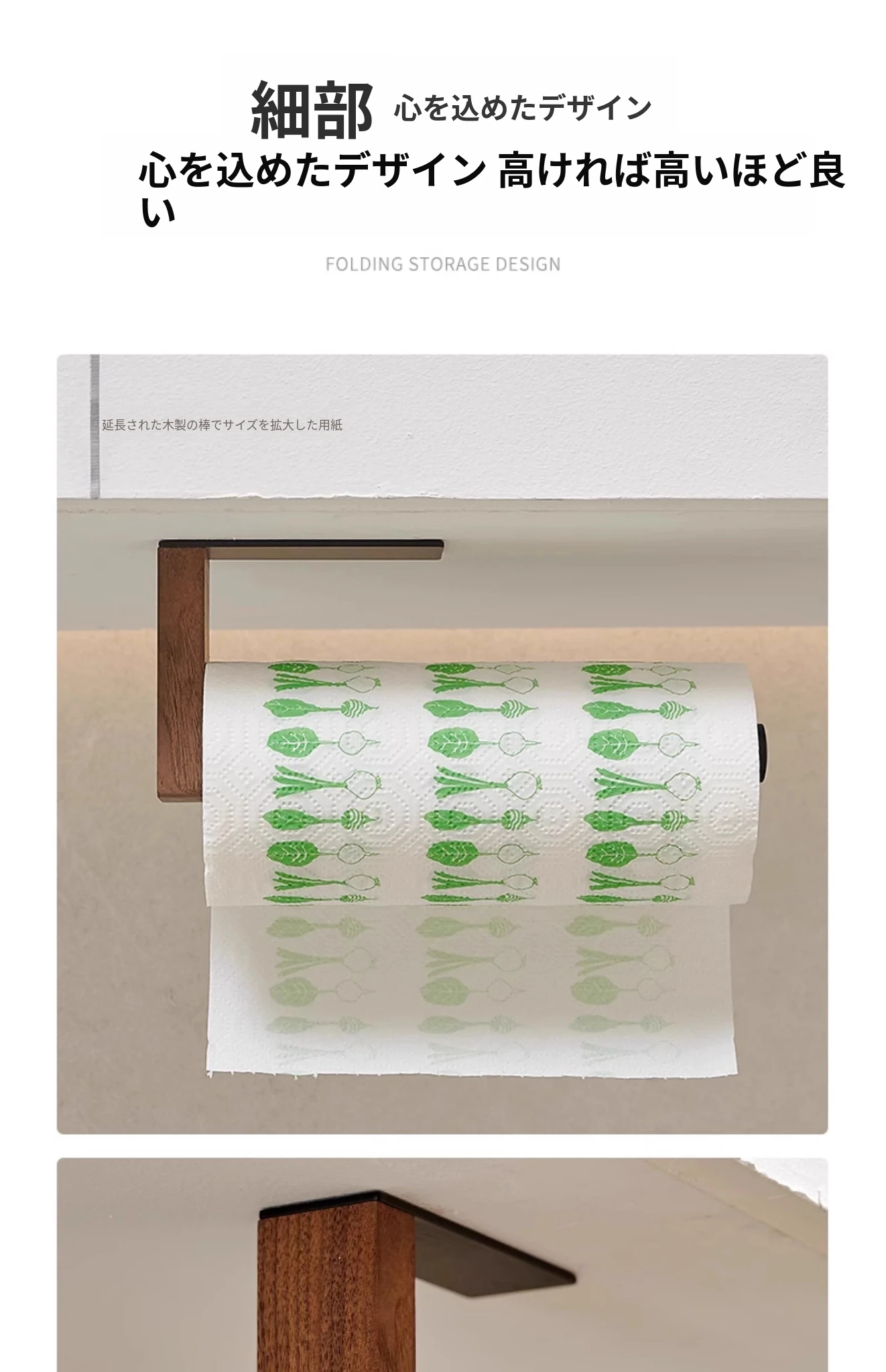 くるみ材のキッチンペーパーホルダー - 取り付け不要で便利!キャビネット用のペーパー掛け、ロールペーパーや布巾、ラップも掛けられるおしゃれなデザイン。整理整頓を簡単に!